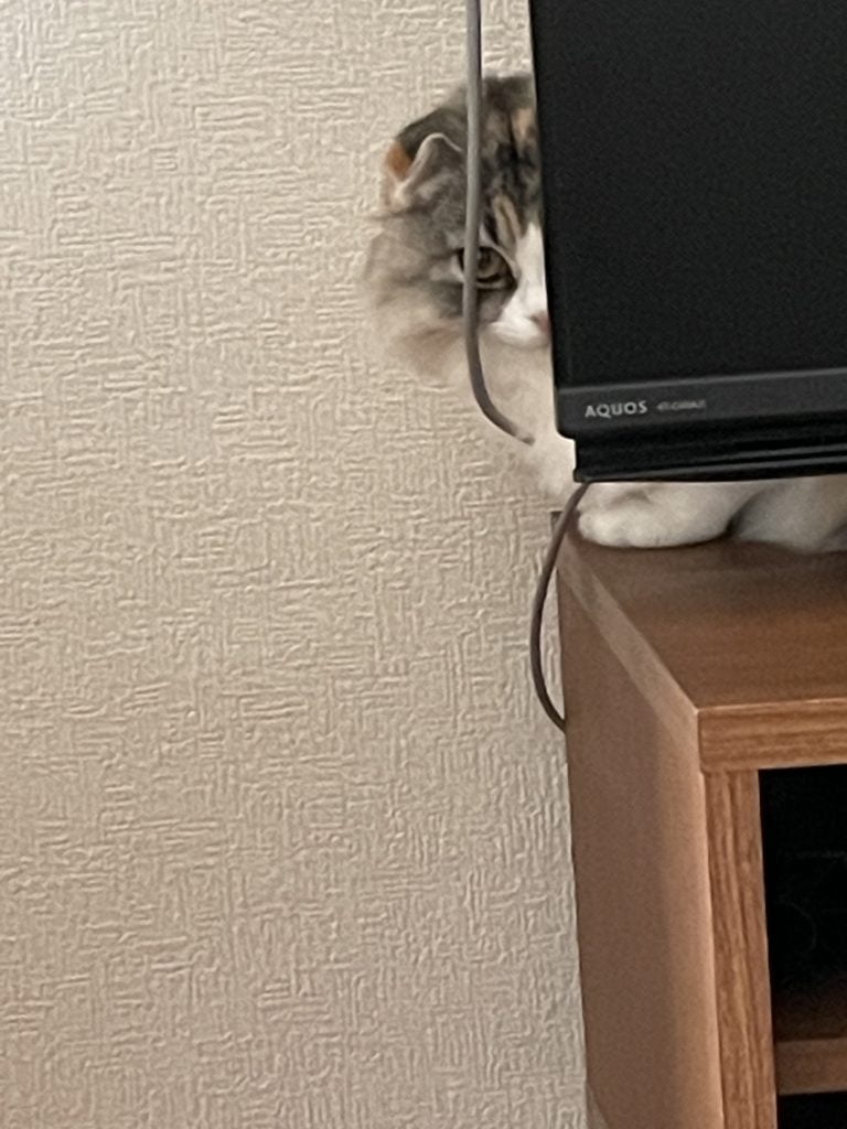 今日のできごと いたずらがバレた?な顔 今日のできごと 2024.03.112024.04.05 TVの後ろには電源タップがあって普段から入らないように注意していますが、気になるらしく毎日入り込もうとします。入らないようにパーテーションを置いたところ、なんとその上に!TVに登って飛び移ったと思われます。攻防戦は続きます。 そこ、入っちゃダメな場所でしょ!と怒られるの覚悟な顔 スマホに夢中だった飼い主も悪いので、叱れませんでした…