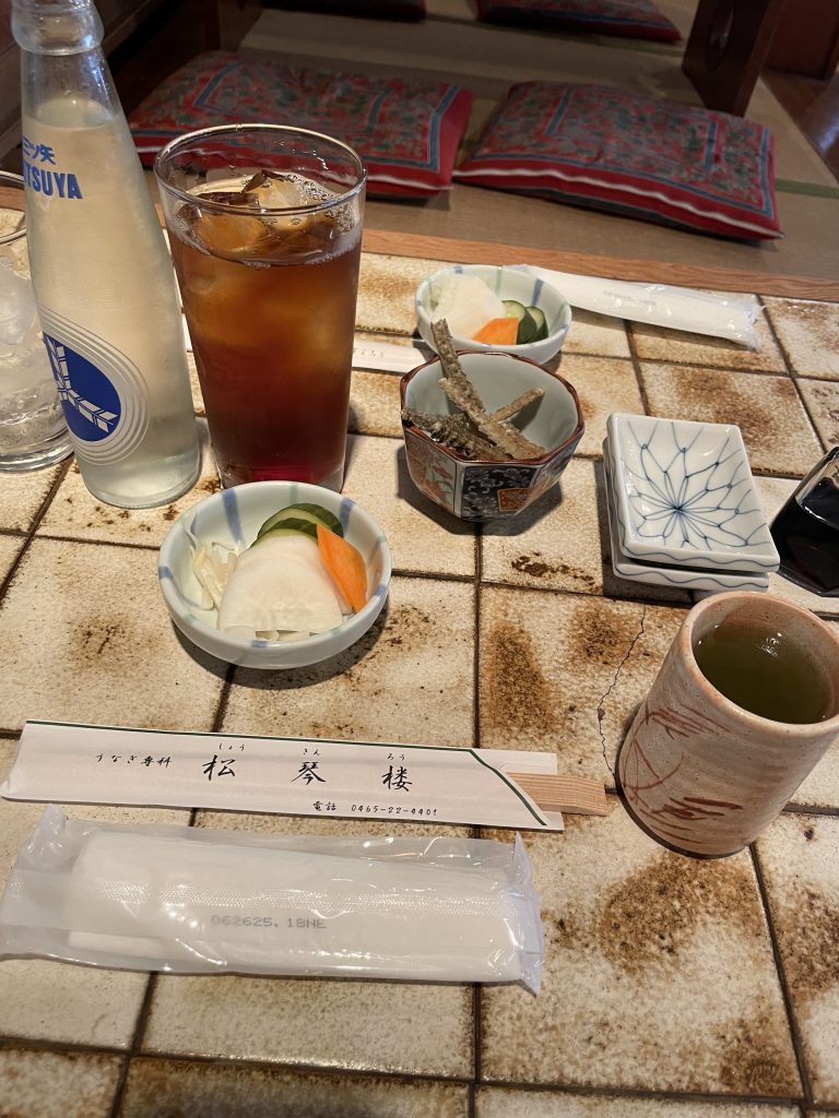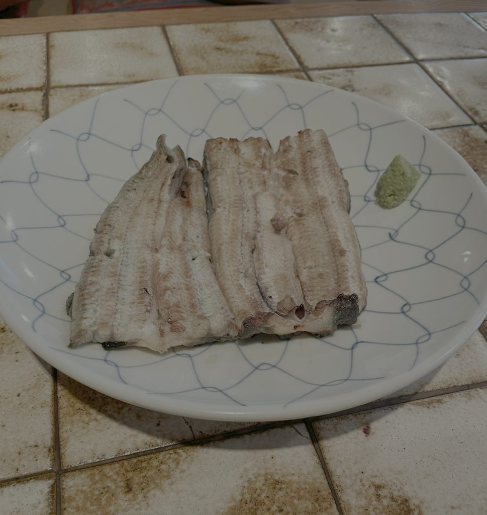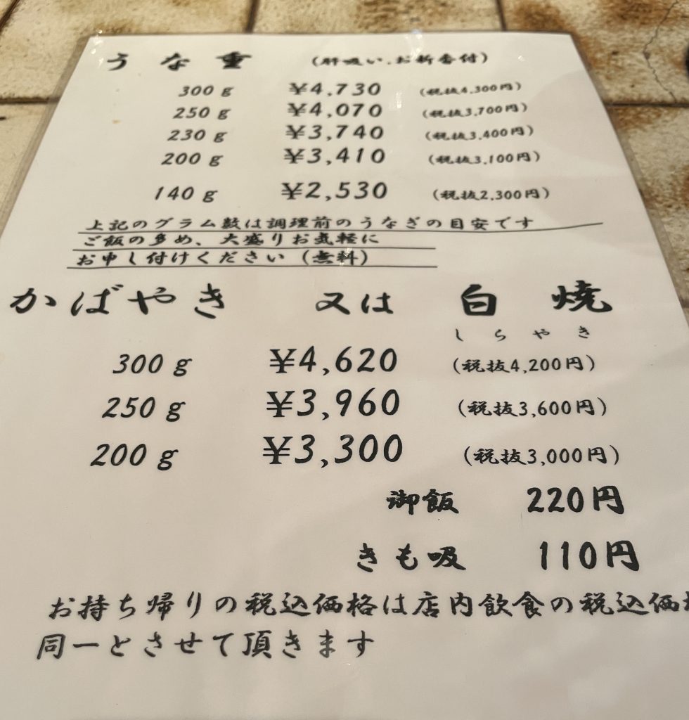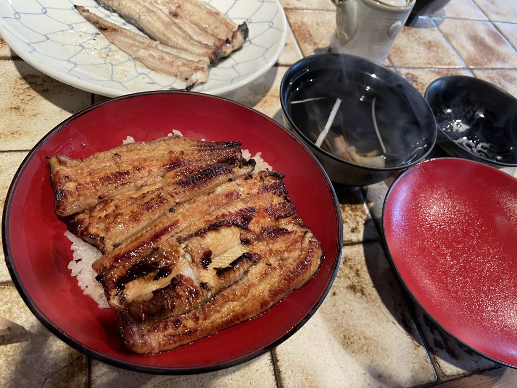 今日のできごと 土用の丑の日 今日のできごと 2025.07.31 小田原のお堀通りにある、鰻屋さん「松琴楼」で久々に食事。鰻重だけでも贅沢なのに白焼きも食べました。白焼きは2人で半分こ。お通しの鰻の骨揚げと漬物が鰻重に付いてきます。 うな重は量が選べて女性やお年寄りには良いと思います。ご飯の量も聞いてもらえます。 うな重には、お通しが付いてきます。 お店ならではの、ふっくら柔らかい白焼きです。