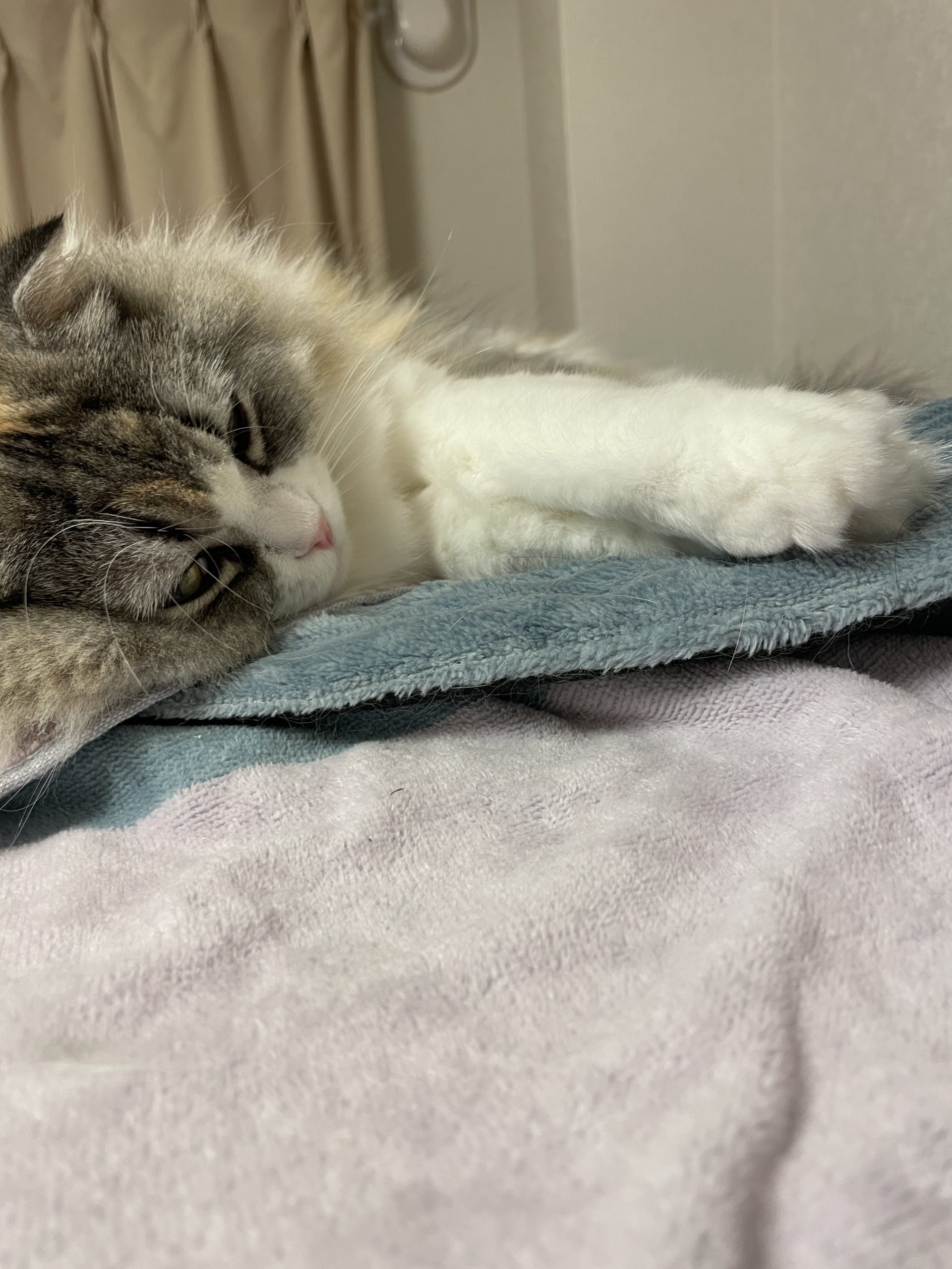 ひたすら昼寝。起こして無視されたりして・・・目を開けたまま寝ている時もあります。